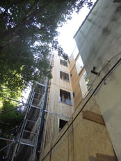Ravalement thermique de copropriété en ossature bois et ouate de cellulose, Pantin (93),