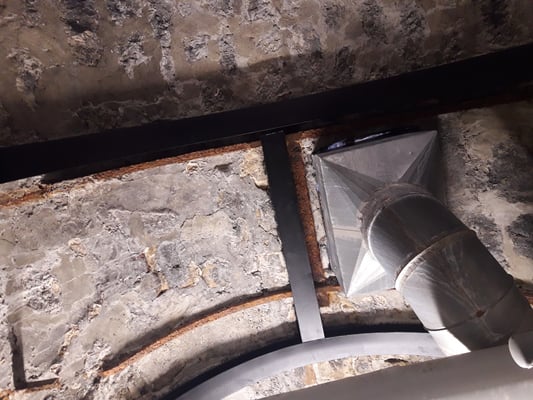 Dans une deuxième phase, la voûte des caves a été consolidée avec des poutrelles.