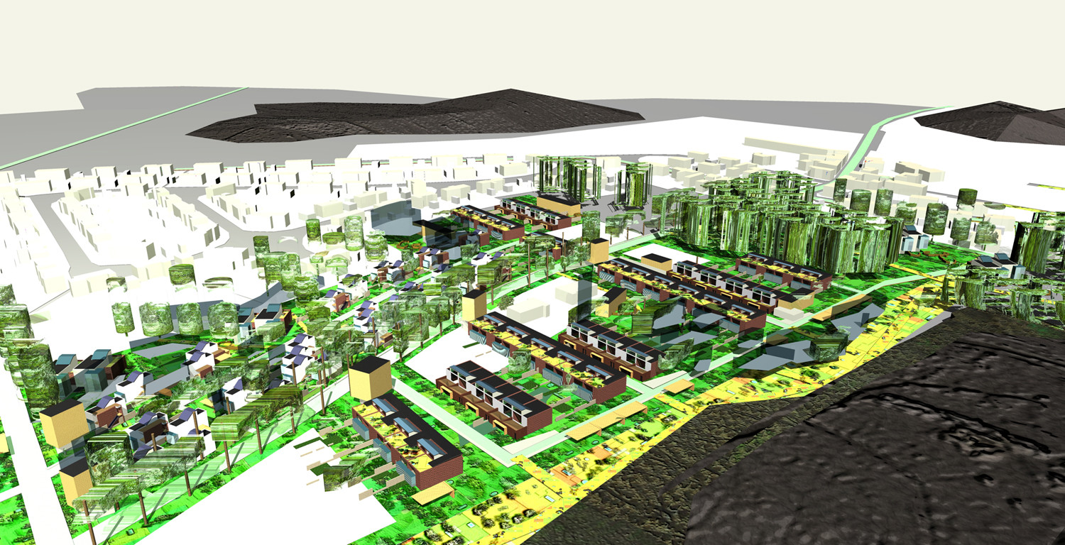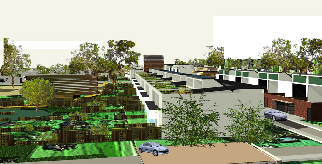 Dans le cadre de l’extension des zones péri urbaines lilloises, ce projet explore les marges entre l’individuel et le collectif. Il allie les avantages de la collectivité (proximité des services et transports, gestion commune de l’eau et des déchets...) au désir de la maison individuelle.